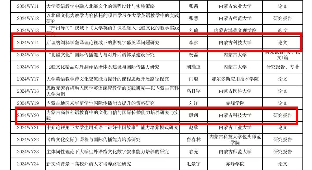 公司教师获批内蒙古社科基金2024年度外语专项 近日,内蒙古自治区社会科学界联合会公布了内蒙古自治区社会科学基金2024年度项目(部分)立项名单,公司教师李多、殷珂获批2024年度外语专项立项资助,特此祝贺! vsport官方网站学科办 2024年5月23日
