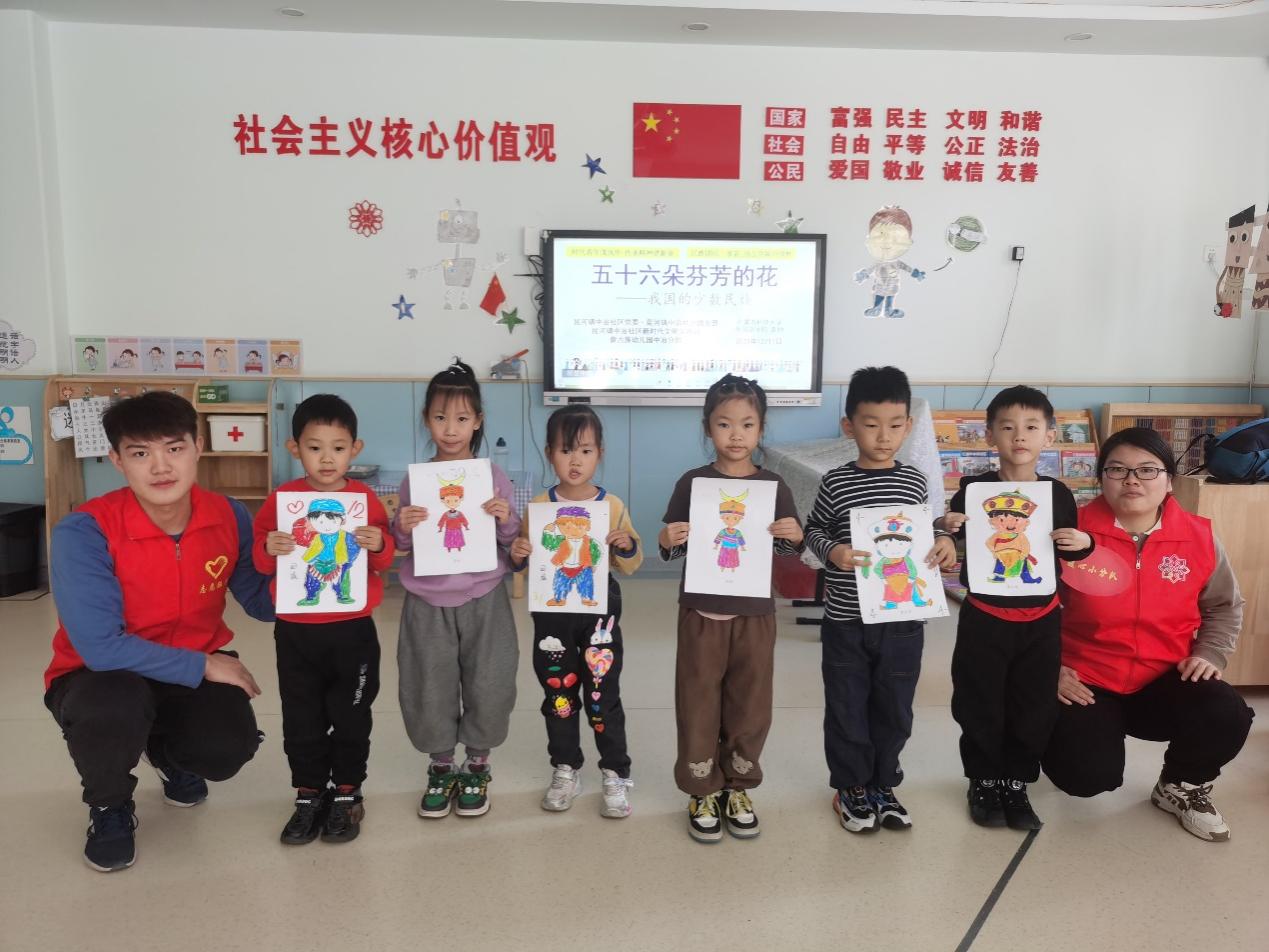 为更好推进老员工就近就便开展社区志愿者实践活动,发挥高校共青团在员工思想政治工作中的主力军作用、助力城市社区基层团组织破解“四缺”难题、服务城市基层治理体系和治理能力现代化。2023121日,vsport官方网站携手昆河镇中冶社区于vsport官方网站实验幼儿园中冶分园开展“时代青年茂风华 传承精神谱新章”系列青少年活动。本次活动紧紧围绕铸牢中华民族共同体意识主题教育活动,vsport官方网站青年同学带领孩子们通过图片、视频、音乐和绘画等多媒体方式,了解五十六个民族的民俗风情和民族特色。