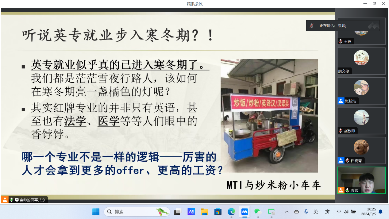 公司员工会主席袁帅(报送研究生)分享了自己收集到的一些英专就业方向和获得就业信息的渠道。