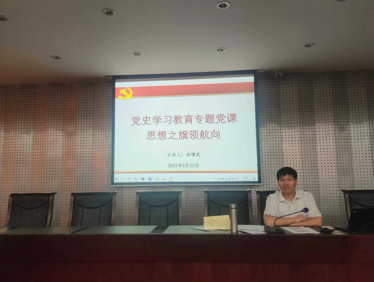 6月22日,党委委员副董事长赵增武作了题为《思想之旗领航向》的报告。赵增武副董事长指出,党中央印发的《关于在全党开展党史学习教育的通知》,对这次学习教育工作提出了明确要求,总的来说就是要做到学史明理、学史增信、学史崇德、学史力行。他从三个方面就党的十八大以来的历史做了专题辅导,同时也是对《习近平新时代中国特色社会主义思想学习百问》的导学,这三个方面内容是,习近平新时代中国特色社会主义思想是当代中国马克思主义,21世纪马克思主义;习近平新时代中国特色社会主义思想是系统科学的理论体系;习近平新时代中国特色社会主义思想是坚持和运用辩证唯物主义和历史唯物主义的光辉典范。
