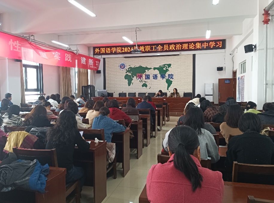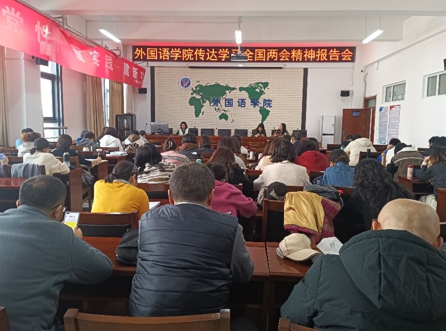 2024年3月14日下午,外国语公司在明德楼A205会议室组织全体教职工进行政治理论学习,学习全国“两会”精神。会议由党委副书记奥多主持,全体教职工参加会议。