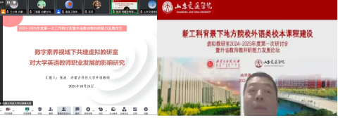 10月24日晚,“新工科背景下地方院校外语类校本课程建设”虚拟教研室2024-2025年度第一次教学研讨会召开,公司与山东交通公司vsport官方网站联合承办此次线上会议。vsport官方网站耿伟经理、山东交通公司vsport官方网站宋岩岩经理出席会议并致辞,vsport官方网站负责人和教师代表,以及来自全国部分理工类地方本科院校联盟11所高校的教师代表共150余人通过线上方式参加会议。